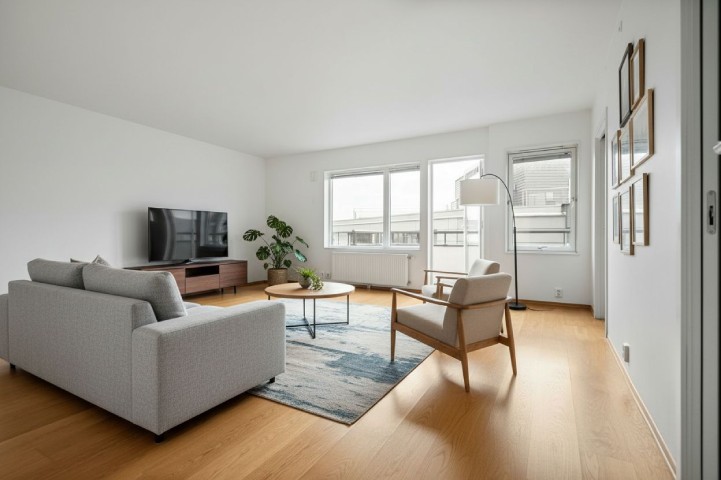 AI virtual staging is the process of using artificial intelligence to digitally furnish and decorate an empty or sparsely furnished room. You upload a photo, the AI analyses the space: walls, floors, windows, light sources, proportions. and renders photorealistic furniture, rugs, artwork, and lighting into the scene.